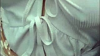 Viral teacher walkin' without bra, playin' with big tits on public road